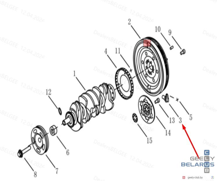 Схематичное (НА СХЕМЕ НОМЕР 3) и визуальное изображение Датчика положения коленчатого вала GEELY ATLAS NL-3 1.8T